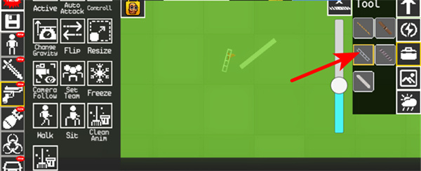 1、拖动红色箭头指向的强度滑块,可调整工具如梯子的放置效果,控制其呈现状态。