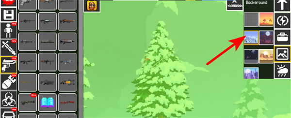 2、点击红色箭头指向的背景图选项,可切换当前场景的背景风格,更换游戏环境。