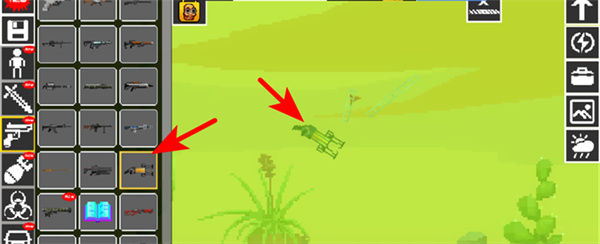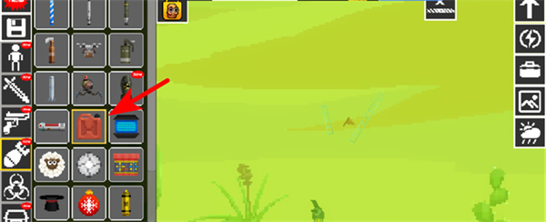 3、在道具栏选择红色箭头指向的载具道具,拖拽到场景中,完成载具放置进行互动。