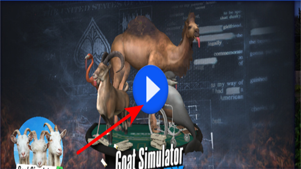 1、在游戏启动界面,点击红色箭头指向的蓝色播放按钮,即可进入模拟山羊的游戏场景。