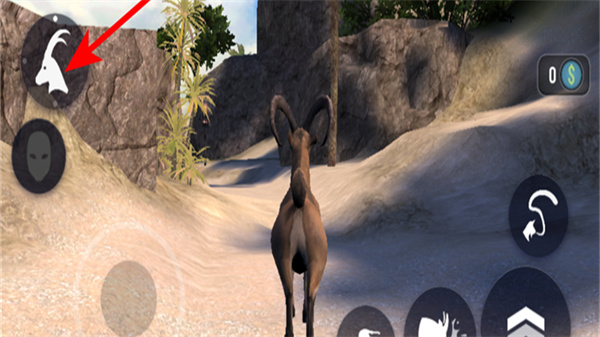 3、点击红色箭头指向的山羊头像按钮,可切换当前操控的角色形态,体验不同角色互动方式。