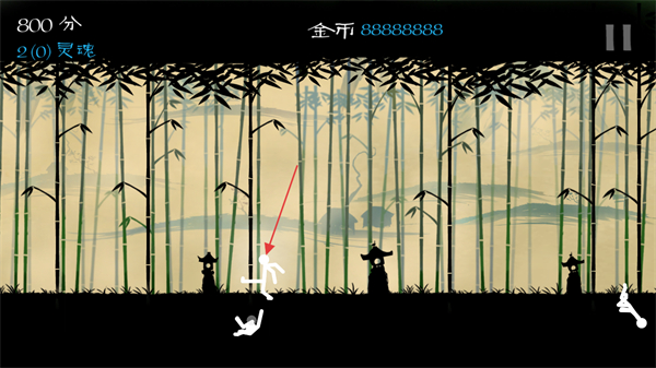 2、游戏进程中,点击屏幕操控角色进行左右移动,同时留意界面的分数与灵魂数值的变化。