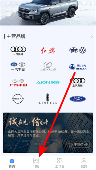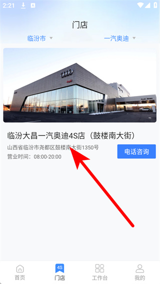 1、打开掌上神器,在首页底部导航栏点击门店,进入门店列表页面。