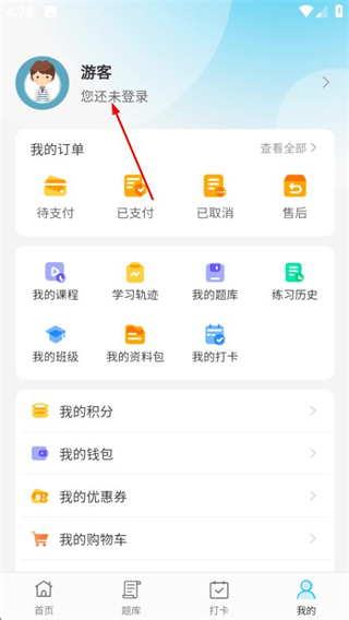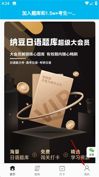 1、打开纳豆题库,在首页点击我的,进入我的页面。