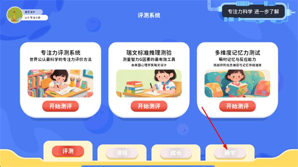 1、在脑立方首页,点击底部趣学选项,切换到趣学页面。