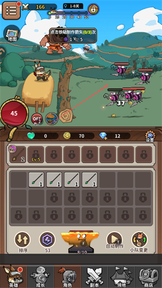 4、使用制作的箭矢攻击敌人,获取金币等奖励,推进关卡进程。