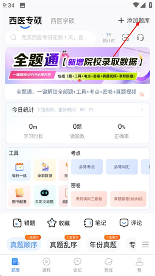 2、在添加题库页面点击口腔选项,展开对应的题库列表。