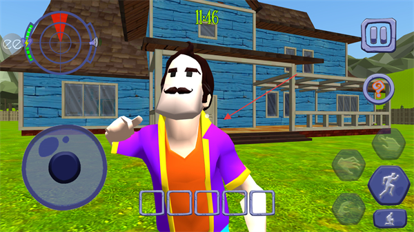 小丑邻居会在房屋内随机巡逻,玩家需要时刻保持警惕,通过蹲伏前进、躲进衣柜、藏在床底等方式避开他的视线;收集到的道具还能派上用场,为搜寻线索争取时间。