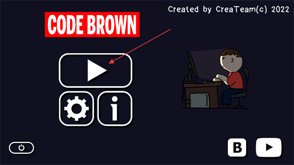 1、在社死模拟器的启动界面中,点击带有播放图标的按钮,启动游戏并进入后续的场景选择界面,同时可通过设置按钮调整游戏相关选项。
