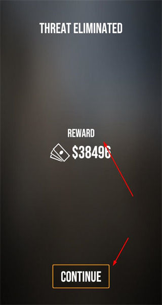3、击败巨兽后获取金币奖励,点击CONTINUE按钮,开启新一轮挑战。