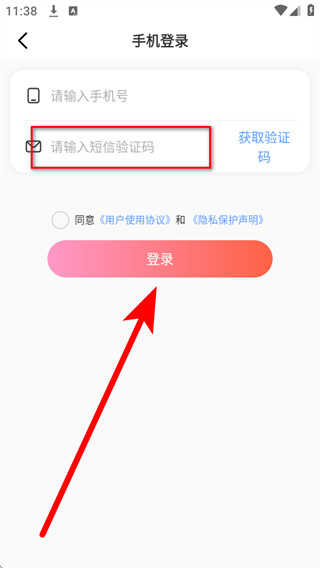 4、将收到的验证码填入验证码框,同时勾选相关协议后,点击登录,即可完成账号登录。