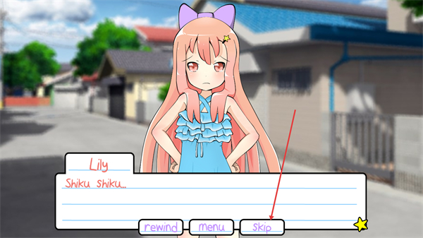 2、进入游戏对话界面后,可查看角色Lily的台词内容,点击Skip按钮能够跳过当前对话,快速推进游戏的剧情流程。