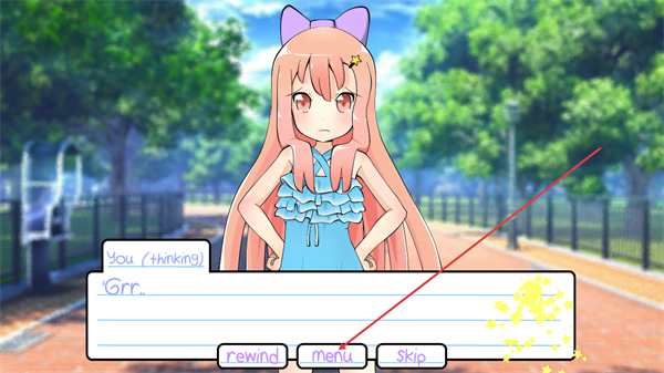 4、处于游戏对话场景时,可通过menu等按钮操作界面,跟随剧情中的思考内容,推进后续的游戏剧情进程。