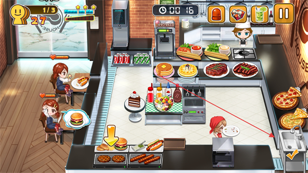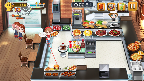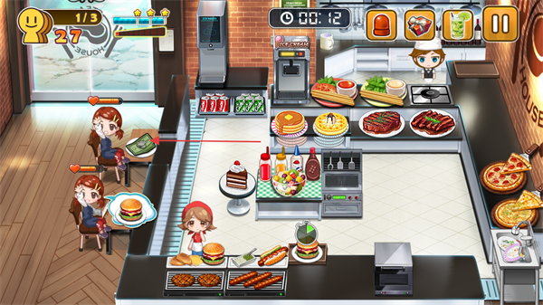 3、完成汉堡制作并配送,顾客获取食物,分数进一步提升。