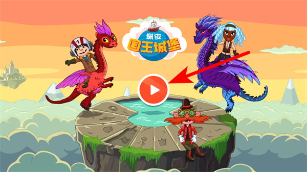 1、进入游戏主界面,点击中间的播放按钮,开启佩皮国王城堡的游戏流程。