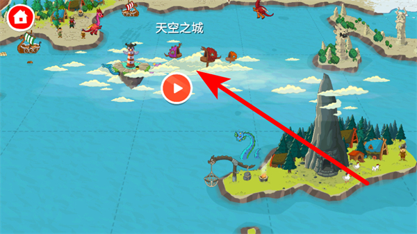 2、在地图页面选择天空之城区域对应的播放按钮,进入该场景的互动关卡。