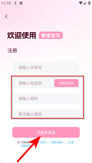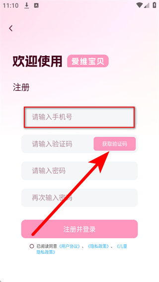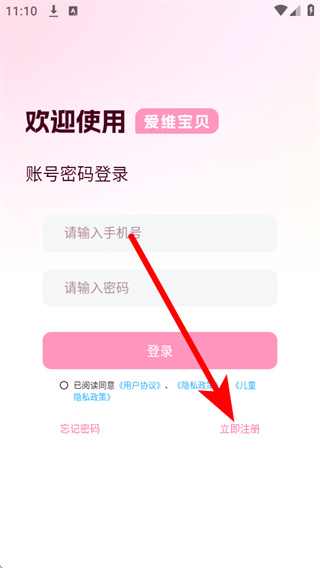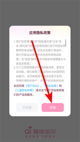 1、打开爱维宝贝,弹出弹窗后,点击同意,进入账号登录页面。