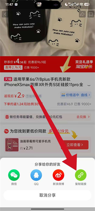 5、在分享选项中,选择复制链接,即可将商品链接复制到剪贴板,完成分享操作。