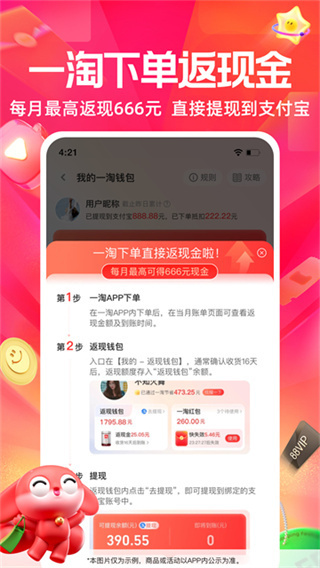 1、购物返利核心功能直达省钱需求,覆盖主流电商平台商品,用户通过平台跳转下单后,返利比例透明公示,返利金额实时追踪,到账后支持便捷提现,降低日常消费成本。