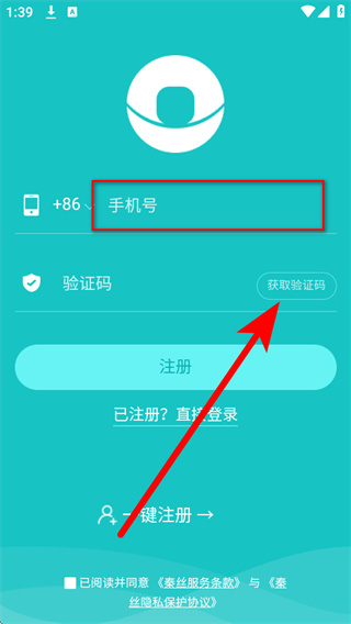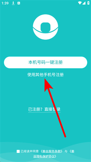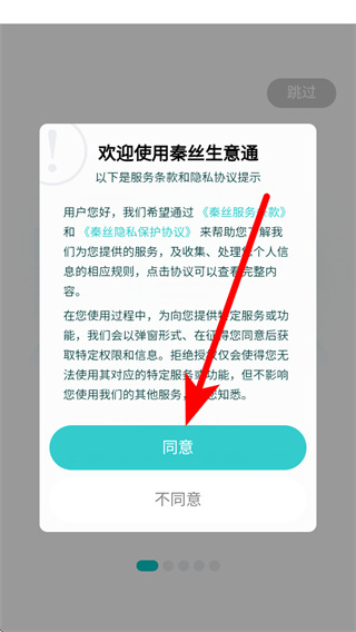 1、打开秦丝生意通,弹出弹窗后,点击同意,进入注册选择页面。