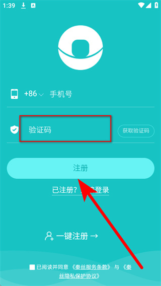 4、将收到的短信验证码填入验证码输入框,点击注册,即可完成账号注册。