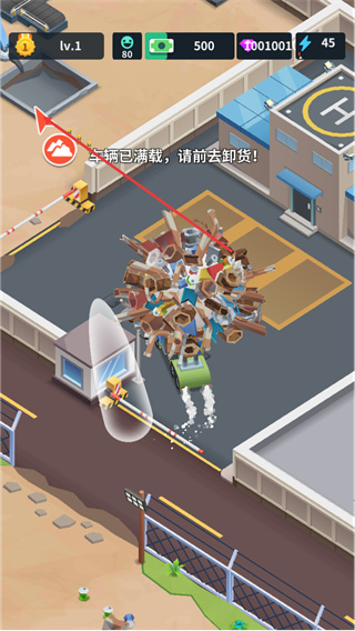 4、当界面出现车辆已满载,请前去卸货的提示后,操控满载废料的车辆前往指定卸货区域,完成废料卸货操作。