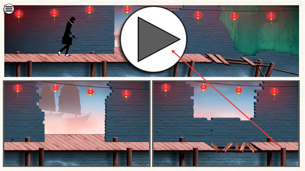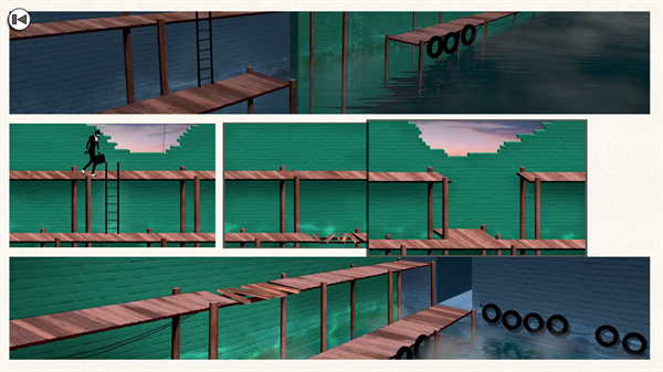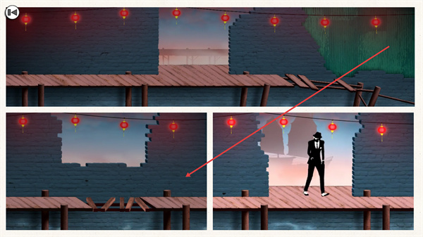 4、通过调换下方的两张图片的位置,让角色安全通过左边图片中的破损地面。
