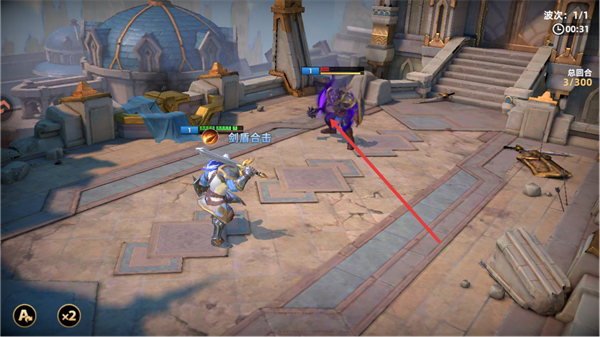 2、释放剑愈突击技能攻击敌人,削减其血量,保持战斗节奏。
