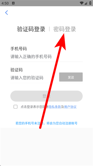 2、在登录界面,点击密码登录,切换到密码登录模式。