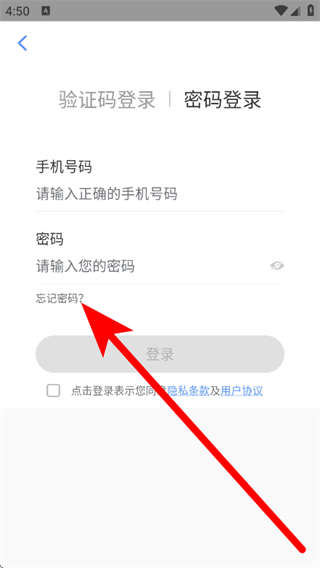 3、在密码登录页面,点击忘记密码,进入重置密码页面。