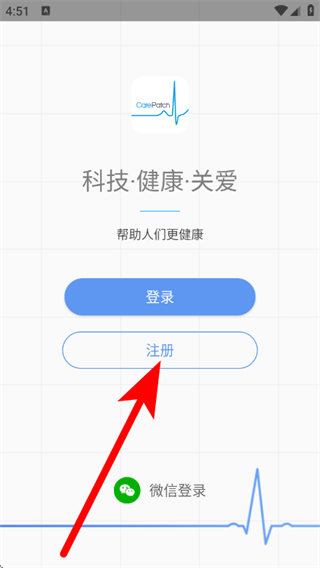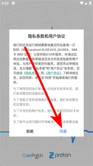 1、打开卡帕奇心电,在弹窗中点击同意,进入登录注册选择页面。