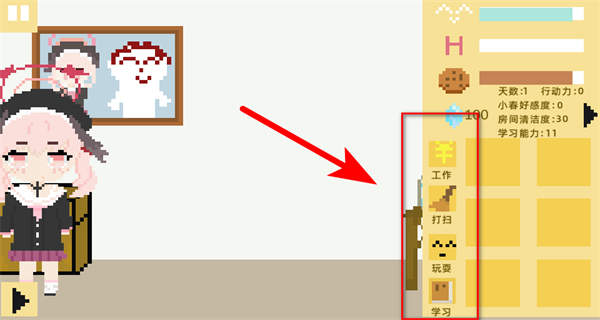 每日固定行动力,对应四种行动选项,消耗后可通过睡眠进入次日,需精准规划行动,平衡创收、心情恢复与学习,确保顺利通过三次考试,推进养成进程。