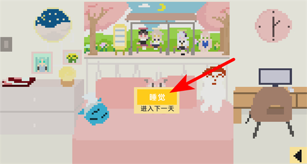 4、完成当日行动后,需要点击睡觉按钮,这是推进游戏天数的操作,点击后进入下一天的养成流程。