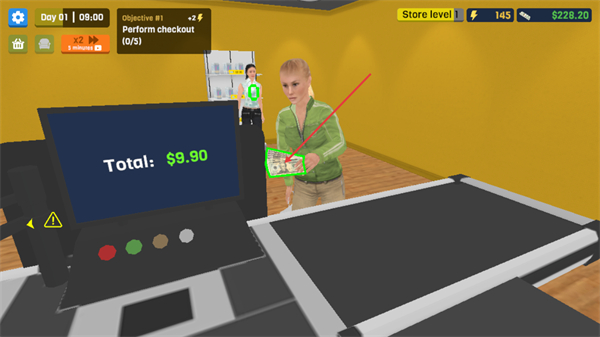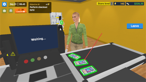 1、在收银台界面显示Waiting时,处理顾客放置的卡牌包商品,准备执行对应的结账操作。