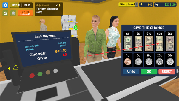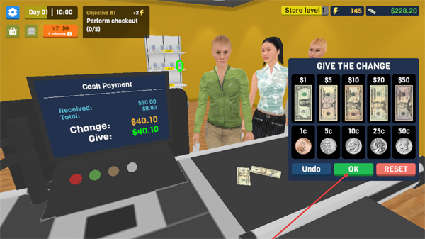 4、确认找零金额已凑齐后,点击OK按钮完成找零操作,结束该笔交易的结账环节。