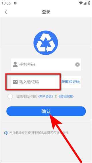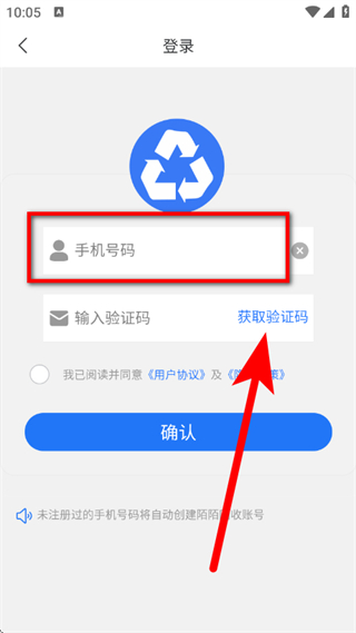 3、在登录页面,输入手机号码,点击获取验证码。