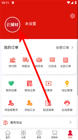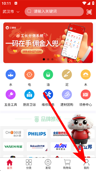 1、打开云辅材,点击底部我的,进入个人中心页面。