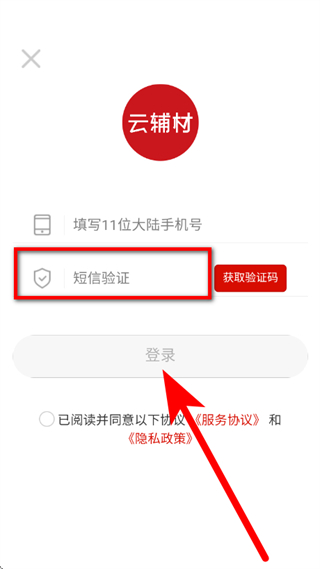4、在输入框输入短信验证,勾选后,点击登录,完成登录。