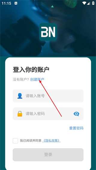 1、在登录页面,点击创建账户选项,进入账户注册页面。
