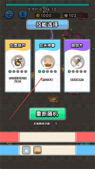 1、在技能选择界面,挑选如来神掌技能,增强战斗能力。