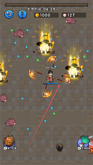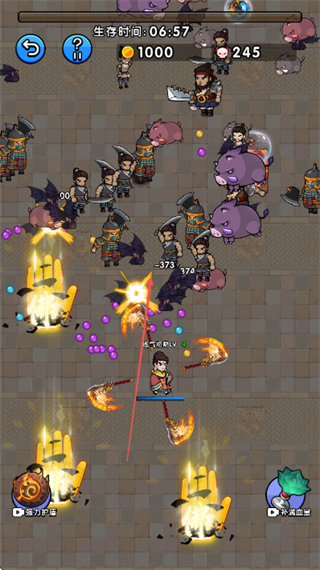4、面对大量怪物,持续用技能和转转刀输出,延长生存时间并提升积分。