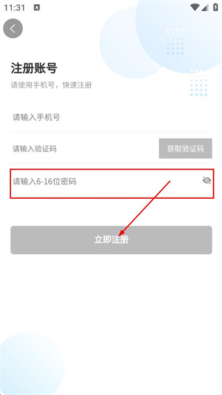 4、在注册账号页,填写密码,点击立即注册,完成账号登录操作。