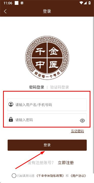 3、在登录页面填写手机号和密码,勾选协议后,点击登录完成账号登录操作。