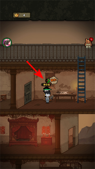 1、进入古宅场景后操控角色移动到红色箭头指向的幸存者旁,触发交互获取对应道具,这是推进剧情与资源积累的关键操作。
