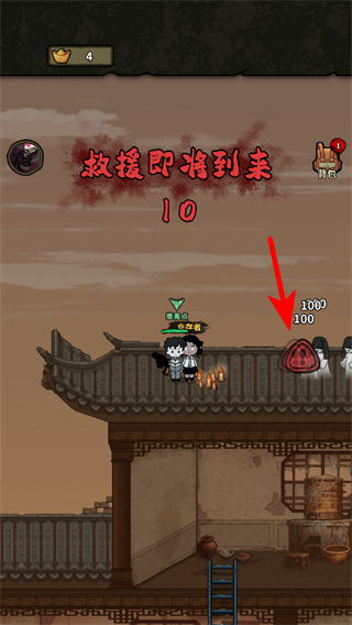 4、在撤离点等待救援时,点击红色箭头指向的道具消耗100资源,阻挡靠近的怪物,保障撤离过程的安全。