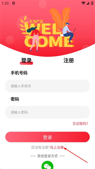 3、随后我们可以在登录页面,点击马上注册选项,切换至注册页面。