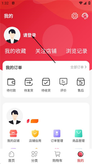 2、在我的页面,点击请登录区域,进入登录相关操作页面。