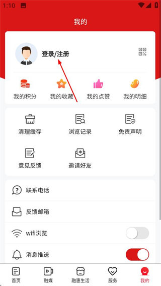 2、在个人中心页面点击登录/注册选项,进入欢迎登录页面。