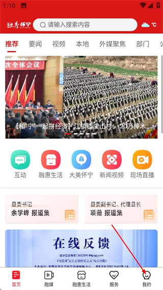1、在独秀怀宁首页点击我的选项,进入个人中心页面。