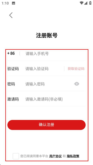 4、在注册页面填写信息并勾选协议后,点击确认注册完成账号注册。